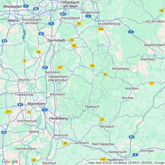 Städte in der Nähe von Erbach Odenwaldkreis